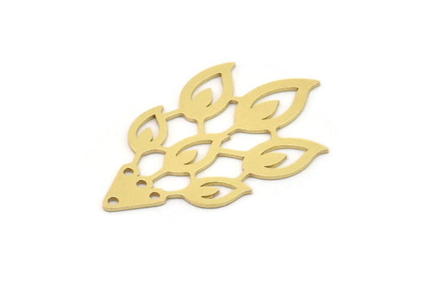Brass Leaf Charm, 6 Raw Brass Leaf Charms With 1 Hole, Charm Pendants (35x21x0.60mm) SMP0885