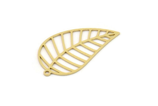 Brass Leaf Charm, 6 Raw Brass Leaf Charms With 1 Loop, Charm Pendants (31x18x0.60mm) SMP0879