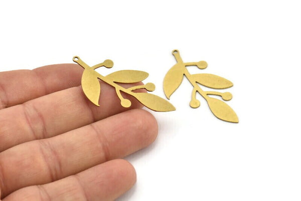 Brass Leaf Charm, 6 Raw Brass Leaf Charms With 1 Loop, Charm Pendants (43x22x0.60mm) A3389