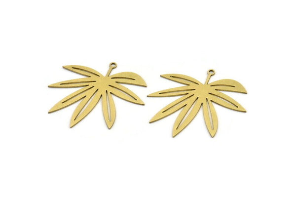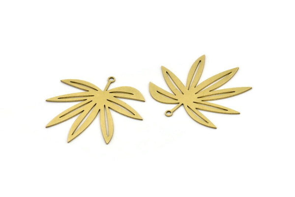 Brass Leaf Charm, 6 Raw Brass Leaf Shaped Charms With 1 Loop, Charm Pendants (32x34x0.60mm) A3401