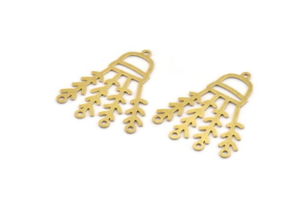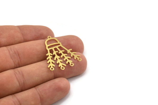 Brass Leaf Charm, 8 Raw Brass Branch Charms With 5 Loops, Charm Pendants, Hat Findings (32x27x0.60mm) A5165