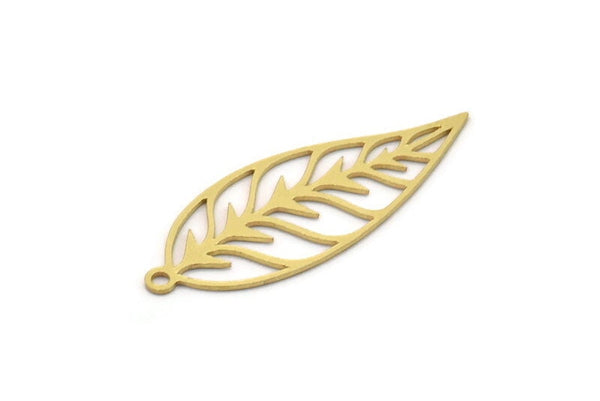 Brass Leaf Charm, 8 Raw Brass Leaf Charms With 1 Loop, Charm Pendants (34x13x0.60mm) SMP1020