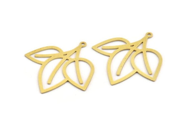 Brass Leaf Charm, 8 Raw Brass Leaf Shape Charms With 1 Loop, Charm Pendants (36x34x0.60mm) A5278