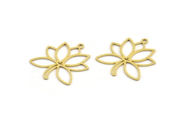 Brass Lotus Charm, 24 Raw Brass Lotus Shape Charms With 1 Loop, Charm Pendants (26x22x0.60mm) A5318