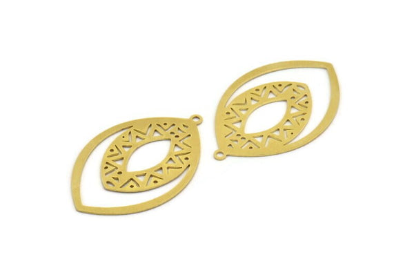 Brass Marquise Charm, 6 Raw Brass Marquise Charms With 1 Loop, Earrings, Pendants (41x26x0.60mm) A6005