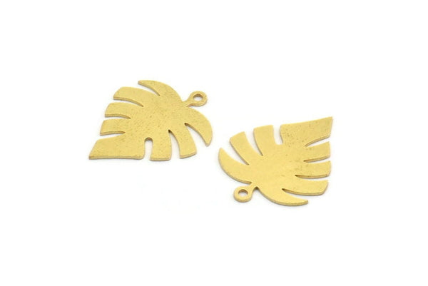Brass Monstera Charm, 10 Raw Brass Monstera Leaf Shaped Charms With 1 Loop, Pendant, Earring Findings (24x19x0.60mm) A6407