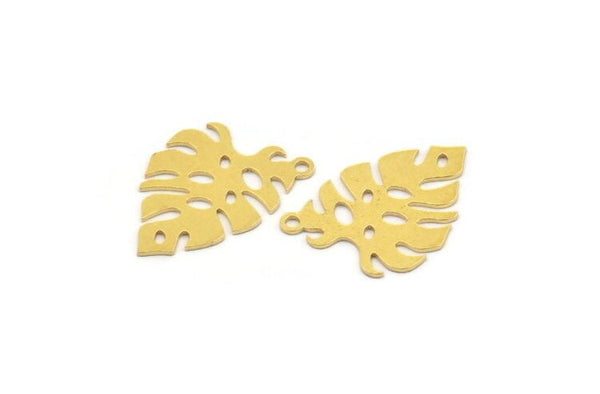 Brass Monstera Charm, 12 Raw Brass Monstera Leaf Shaped Charms With 1 Loop, Pendant, Earring Findings (22x16x0.60mm) A4667