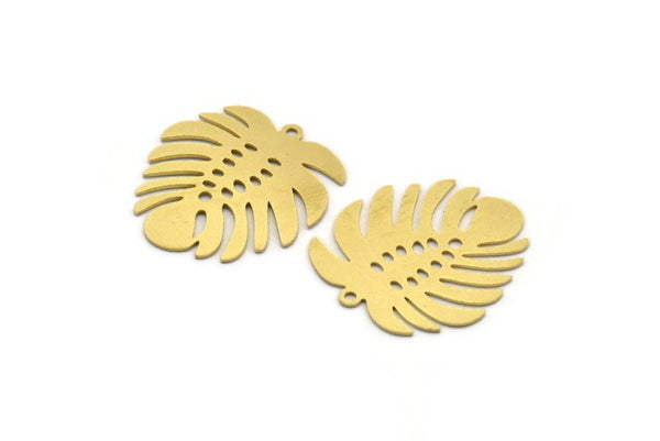 Brass Monstera Charm, 6 Raw Brass Monstera Leaf Shaped Charms With 1 Loop, Pendant, Earring Findings (27x25x0.60mm) A6121