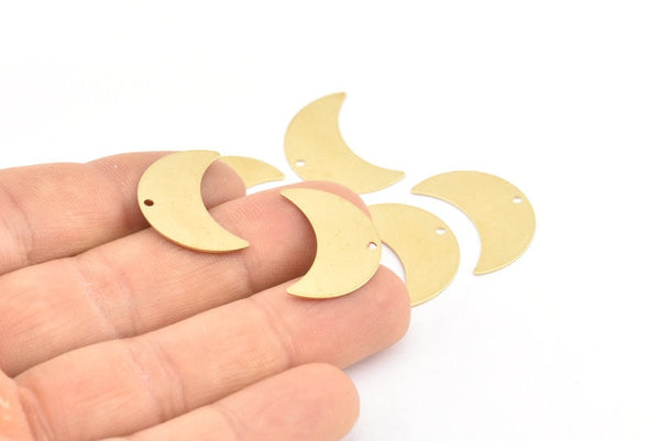 Brass Moon Charm, 10 Raw Brass Moon Charms with 1 Hole, Pendants, Earrings (22x10x0.50mm) D0750
