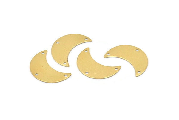 Brass Moon Charm, 10 Raw Brass Moon Charms with 3 Holes, Pendants (22x10x0.50mm) D0782