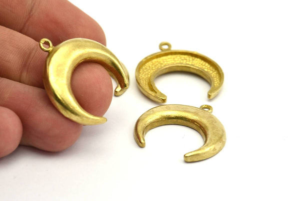 Brass Moon Charm, 2 Raw Brass Horn Charms, Pendants, Jewelry Findings (27x26mm) N0299