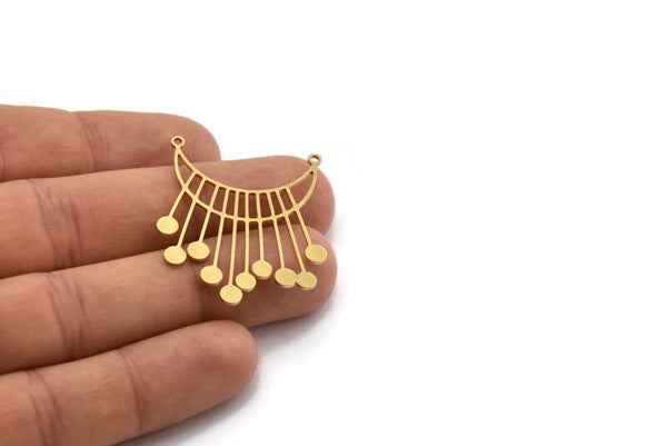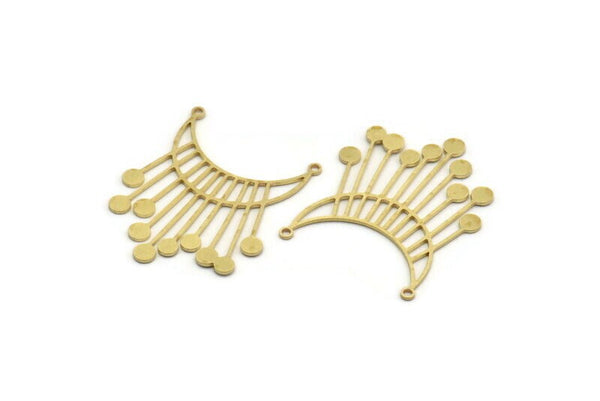 Brass Moon Charm, 6 Raw Brass Crescent Moon Charms With 2 Loops, Necklace Charms, Fringed Charms (39x32x0.80mm) A6339