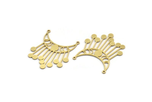 Brass Moon Charm, 6 Raw Brass Crescent Moon Charms With 2 Loops, Necklace Charms, Fringed Charms (39x32x0.80mm) A6341