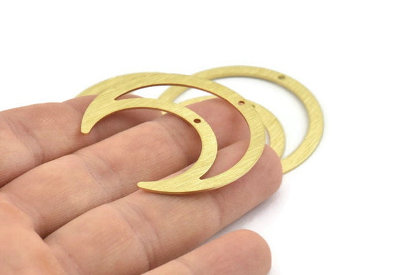 Brass Moon Charm, 6 Textured Raw Brass Crescent Moon Charms With 2 Holes, Pendants (42x16x0.80mm) M178