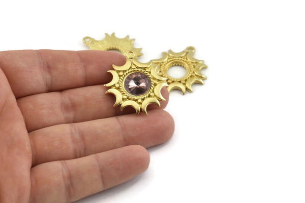 Raw Brass Moon Pendants With 1 Loop, Stone Setting - Pad Size 10mm