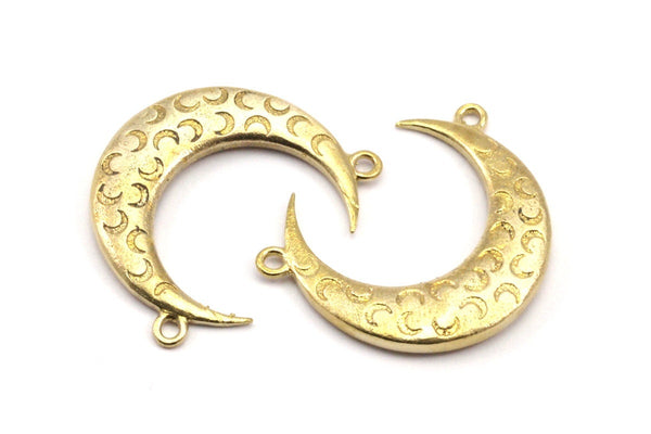 Brass Moon Charm, Raw Brass Textured Horn Charms, Pendant, Jewelry Finding (27x8x3.30mm) N0169