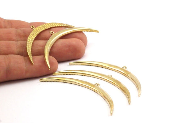 Raw Brass Textured Wide Crescent Moon Necklace Pendants, Charms