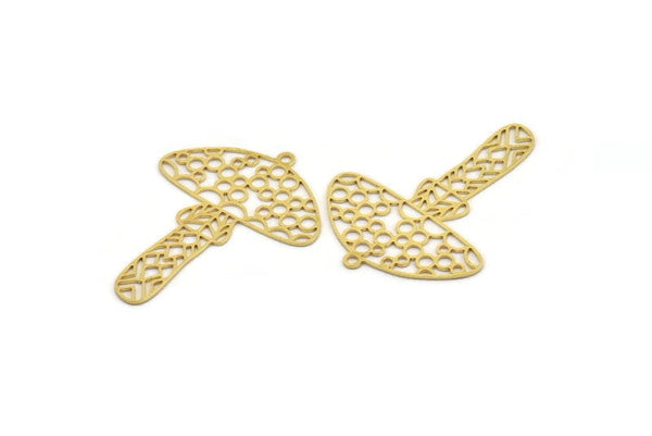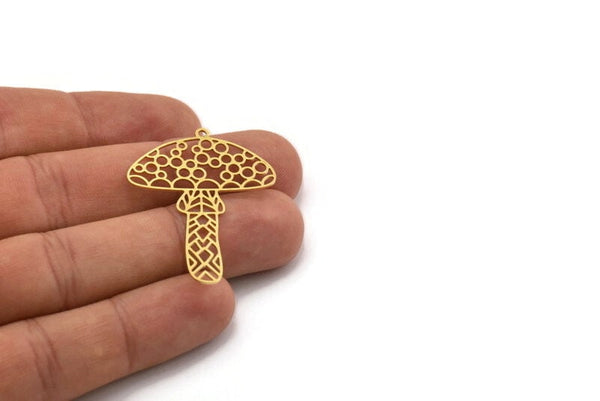 Brass Mushroom Charm, 8 Raw Brass Mushroom Charms With 1 Loop, Charm Pendants (42x32x0.60mm) A4771