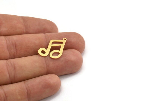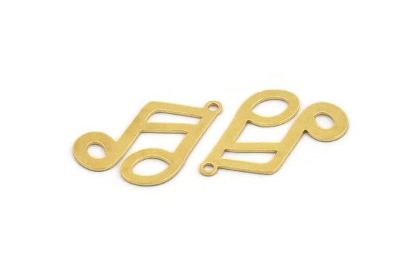 Brass Note Charm, 12 Raw Brass Sixteenth Note Shaped Charms With 1 Loop, Pendants, Earring Findings (25x15x0.60mm) A5224