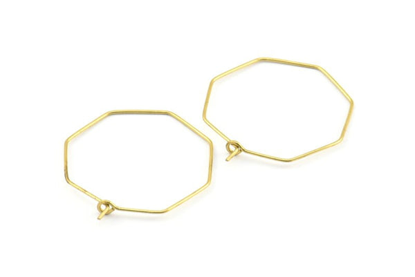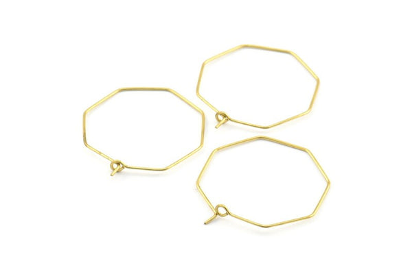 Brass Octagon Earring, 24 Raw Brass Wire Octagon Earring Charms, Pendants, Findings (28.5x0.7mm) E302