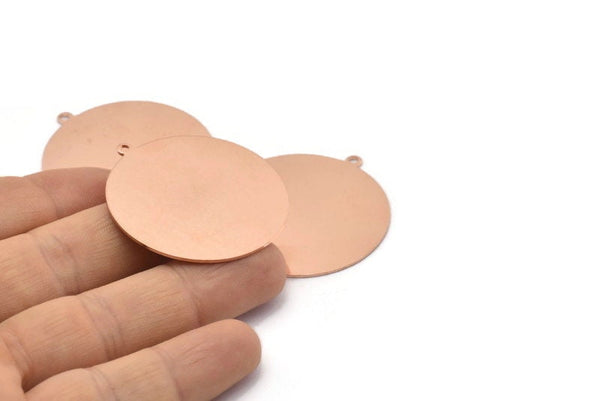 Copper Circle Charm, 4 Raw Copper Circle Charms With 1 Loop, Pendants, Earrings, Findings (41x38x0.6mm) M02059