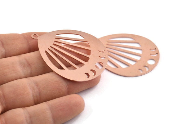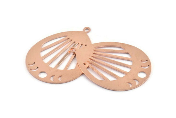 Copper Drop Charm, 2 Raw Copper Moon Phases Charms With 1 Loop, Pendants (49x36x0.80mm) M1034