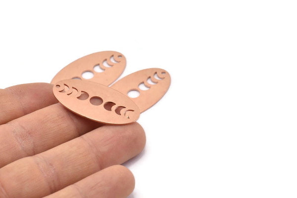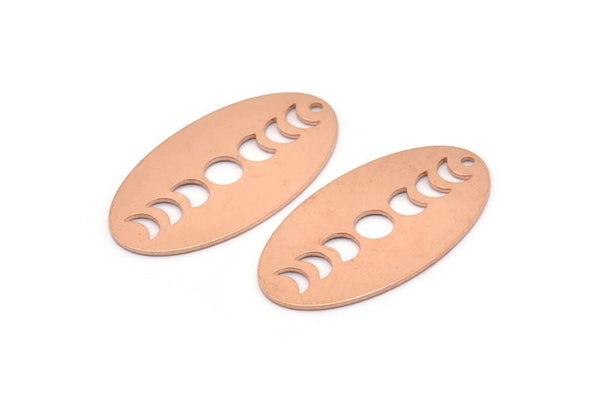 Copper Oval Charm, 8 Raw Copper Oval Moon Phases Charms With 1 Hole, Pendants, Earrings, Findings (35x19x0.80mm) M02177