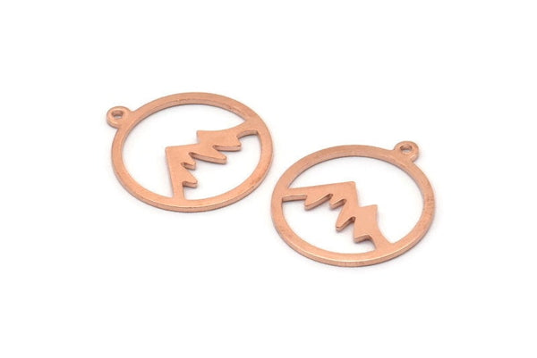Raw Copper Mountain Shaped Round Charms With 1 Loop