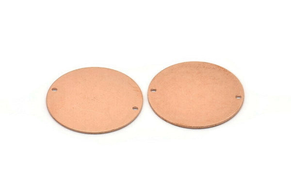 Copper Round Charm, 2 Raw Copper Charms With 2 Holes, Pendants, Findings (30x0.80mm) M02626
