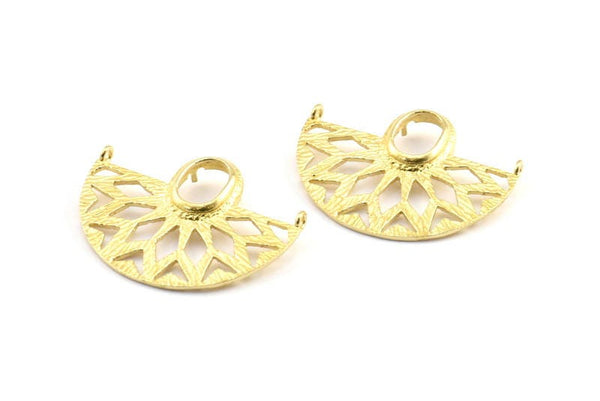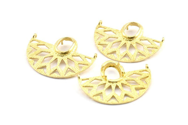 Raw Brass Semi Circle Pendants with 2 Loops and 1 Pad Setting