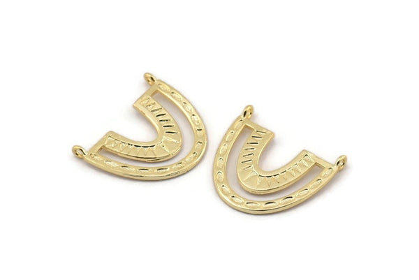 Gold Charm, 2 Gold Plated Brass, Gold Pendants, Charm Pendants, Gold U Shape Charms With 2 Loops (26x23x1.2mm) N1448 H0982