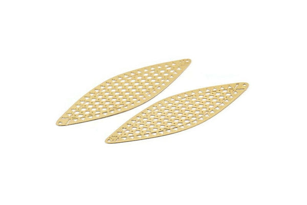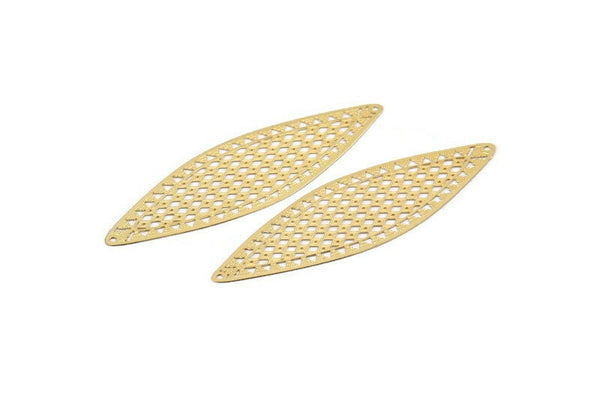 Gold Plated Brass Textured Marquise Earring Charms With 2 Holes Pendants