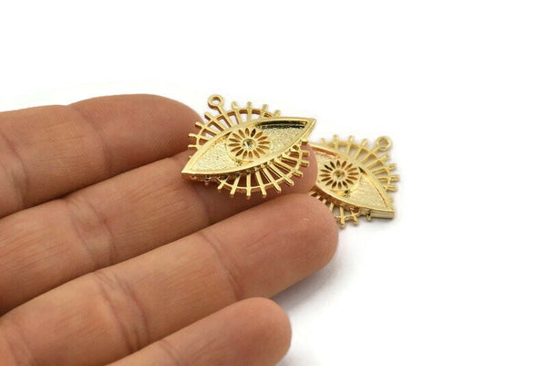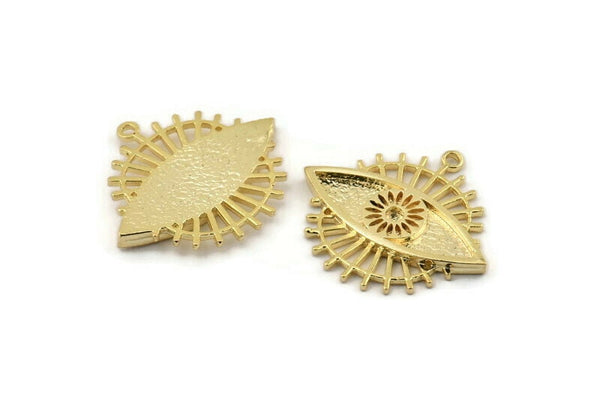 Gold Eye Charm, Gold Plated Brass Eye Charms With 1 Loop, Pendants - Pad Size 2mm (27x25x2mm) N1454