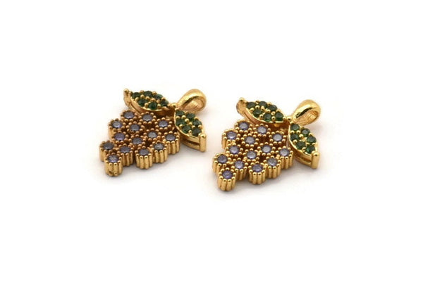 Gold Grape Charm, Gold Plated Grape, Cubic Zircon, CZ Pave Grape Charm, Zircon Charm Pendants With 1 Loop (18x14x2mm) SY0102