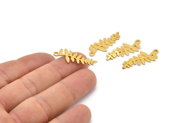 Gold Leaf Charm, 6 Gold Plated Brass Leaf Charms With 1 Loop, Pendants, Findings (28x11x0.80mm) D1232 Q0892