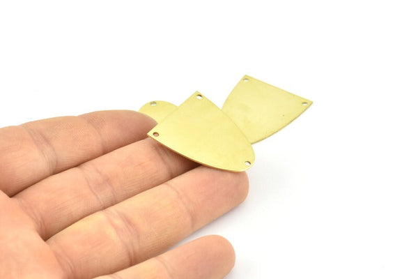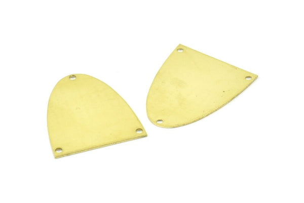 Half Ellipse Charm, 6 Raw Brass Half Ellipse Shape Charms With 3 Holes, Pendants, Earrings, Findings (28x24x0.70mm) B0217