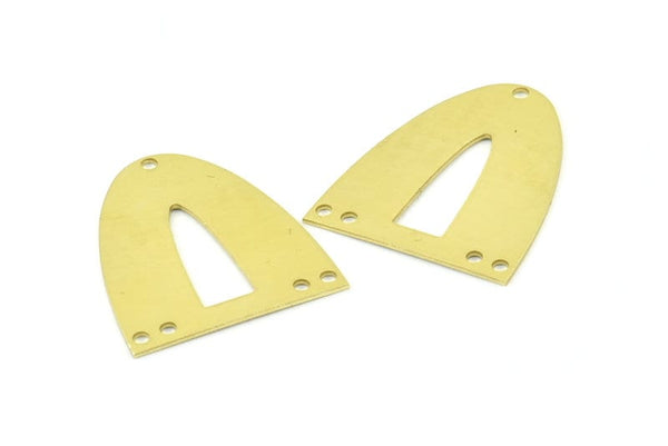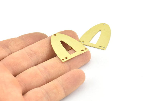 Half Ellipse Charm, 6 Raw Brass Half Ellipse Shape Charms With 5 Holes, Pendants, Earrings, Findings (28x24x0.70mm) B0235