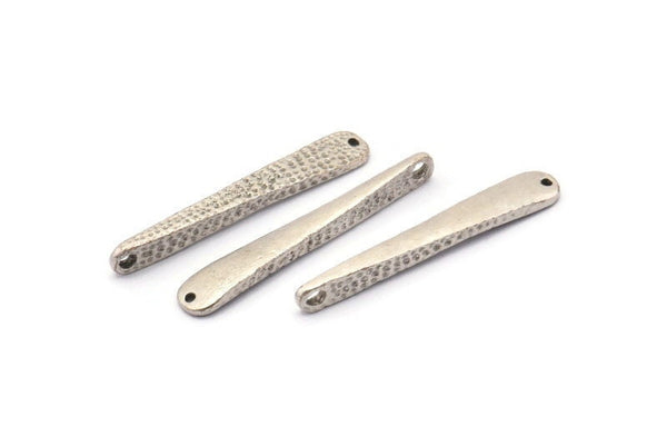 Antique Silver Plated Brass Hammered Bar Pendants With 2 Holes