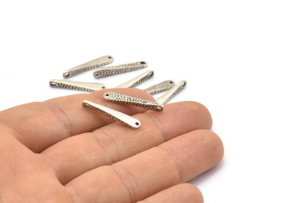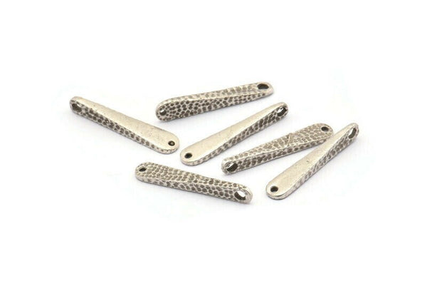 Antique Silver Plated Brass Hammered Bar Pendants With 2 Holes