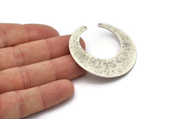Antique Silver Plated Brass Hammered Moon with 2 Holes Pendant