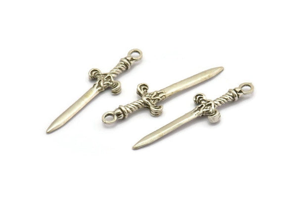 Knight's Sword Pendant, 4 Antique Silver Plated Plated Brass Sword Charms (36x10mm) N0248 H1010