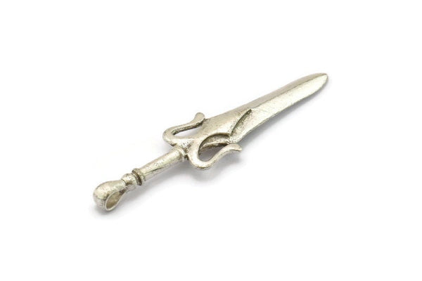 Antique Silver Plated Brass Sword Charm With 1 Loop
