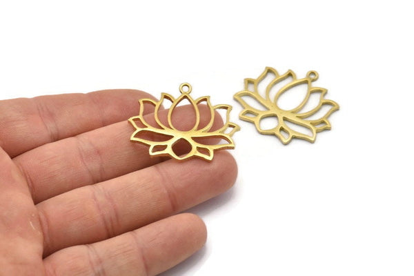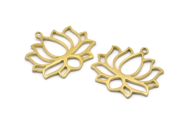 Raw Brass Hammered Lotus Flower Textured Pendants With 1 Loop