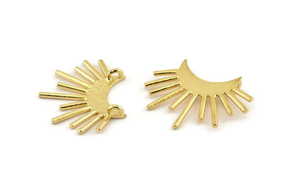 Gold Plated Brass Crescent Moon and Semi Sun Pendants With 2 Loops, Findings, Charms