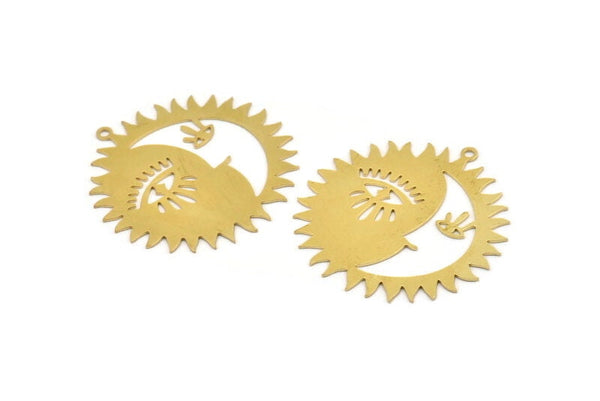 Moon and Sun, 2 Raw Brass, Brass Moon, Brass Sun, Charm Pendant, Brass Pendant, Brass Charm With 1 Loop (40x0.60mm) A4624
