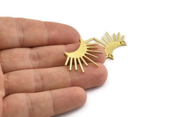 Raw Brass Crescent Moon and Semi Sun Pendants With 2 Loops, Findings, Charms