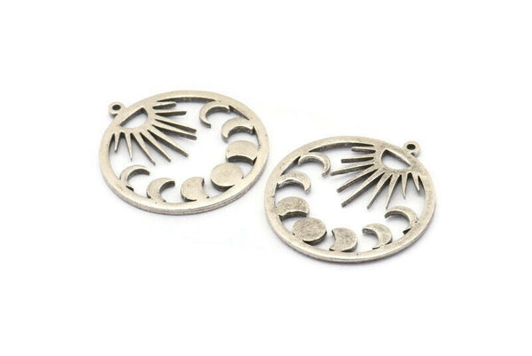 Antique Silver Plated Brass Crescent Moon Charms With 1 Loop