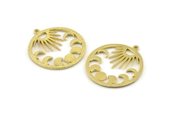 Raw Brass Crescent Mooun Charms With 1 Loop