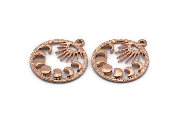Rose Gold Plated Brass Crescent Moon Phases Charms With 1 Loop