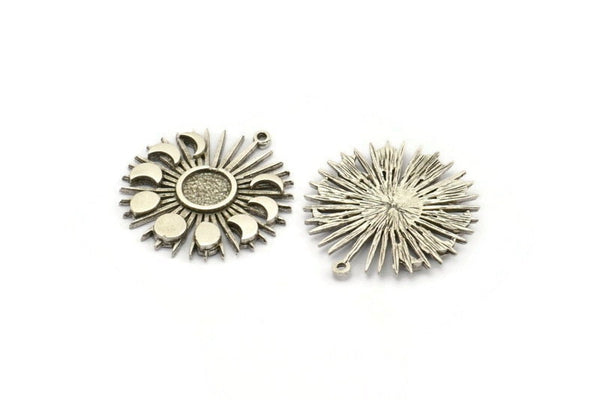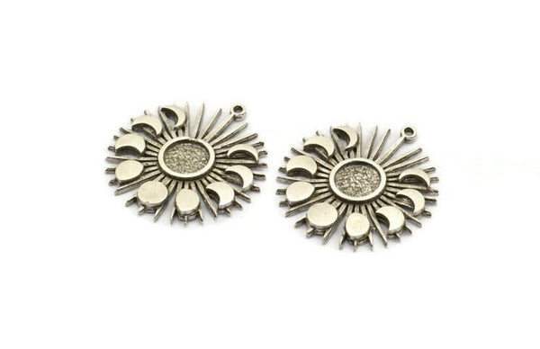 Antique Silver Plated Brass Crescent Moon Charm With 1 Loop